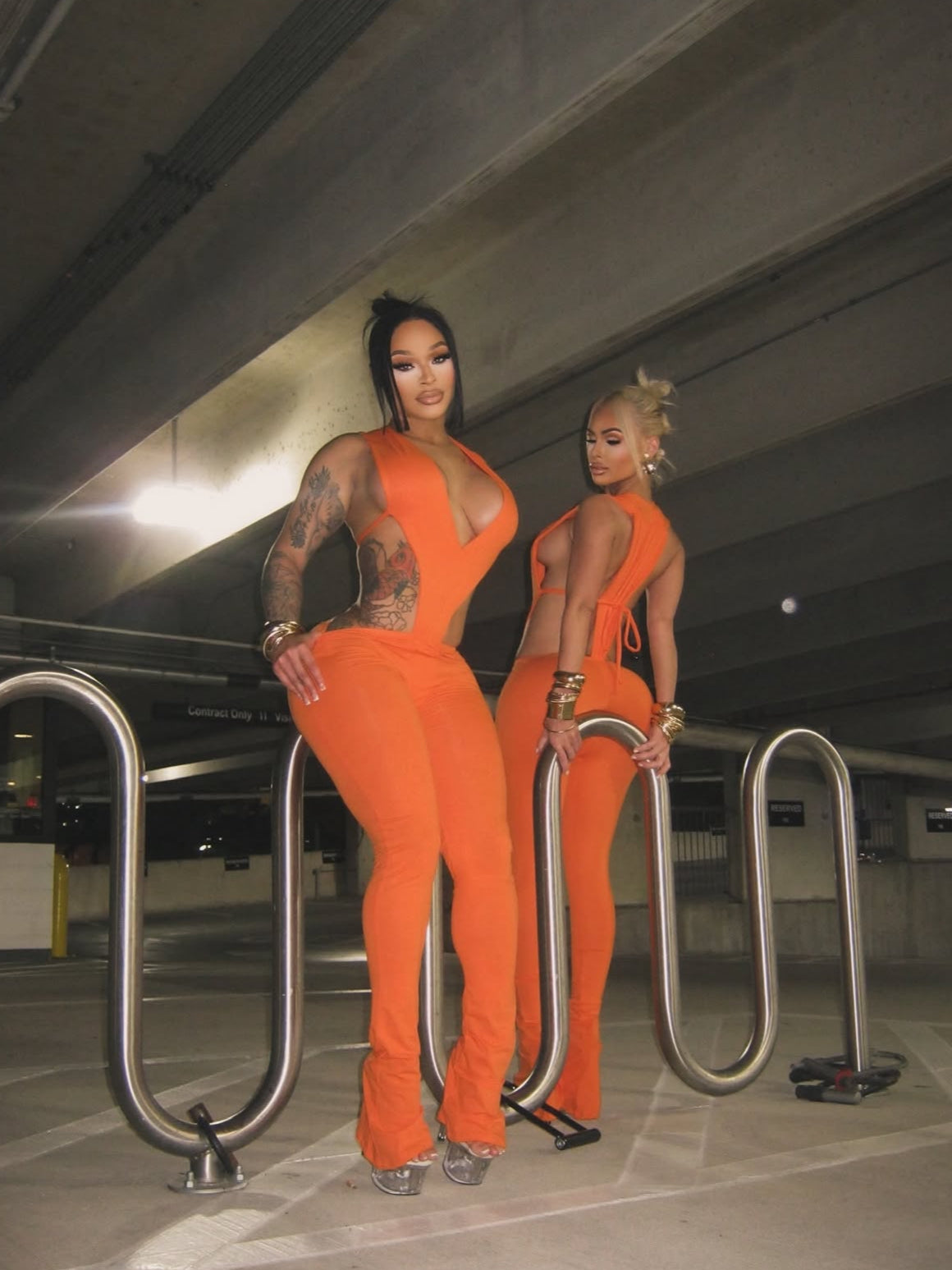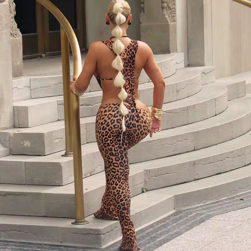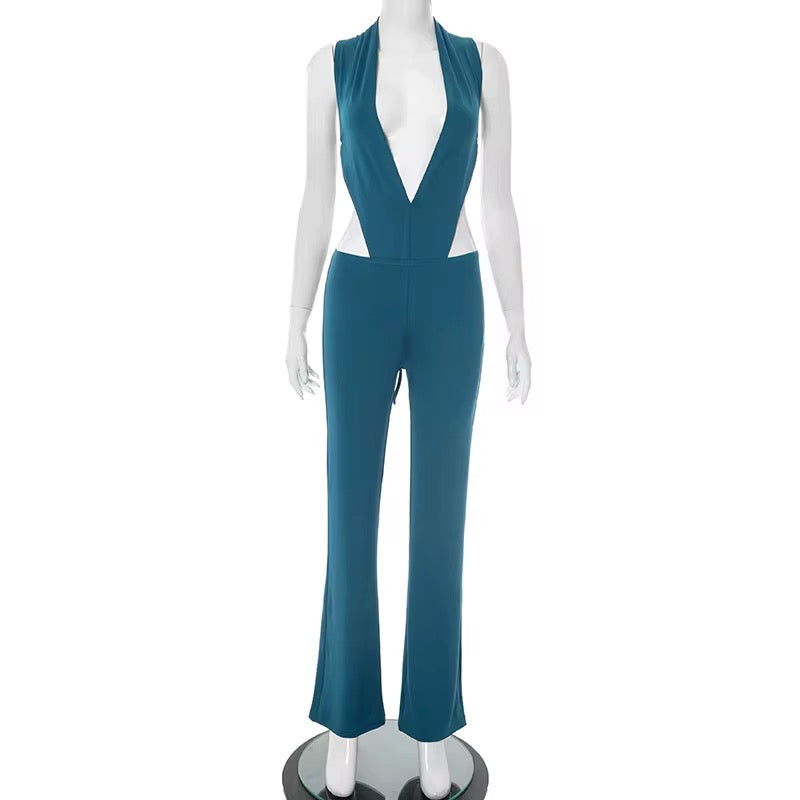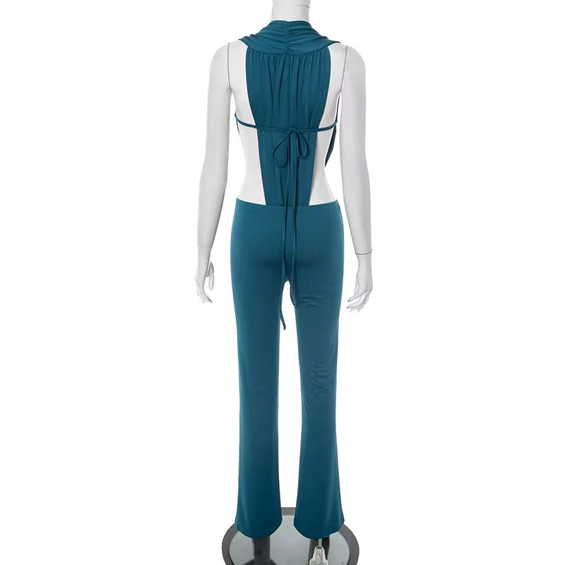 Spice up your wardrobe with the He Loves Us Both Plunge Bodysuit Set. This spicy set features a backless top and sleeveless design, perfect for showing off your toned arms. The flare pants add a touch of flare to your look, while the back plunge detail and drawstring provide a seductive finish