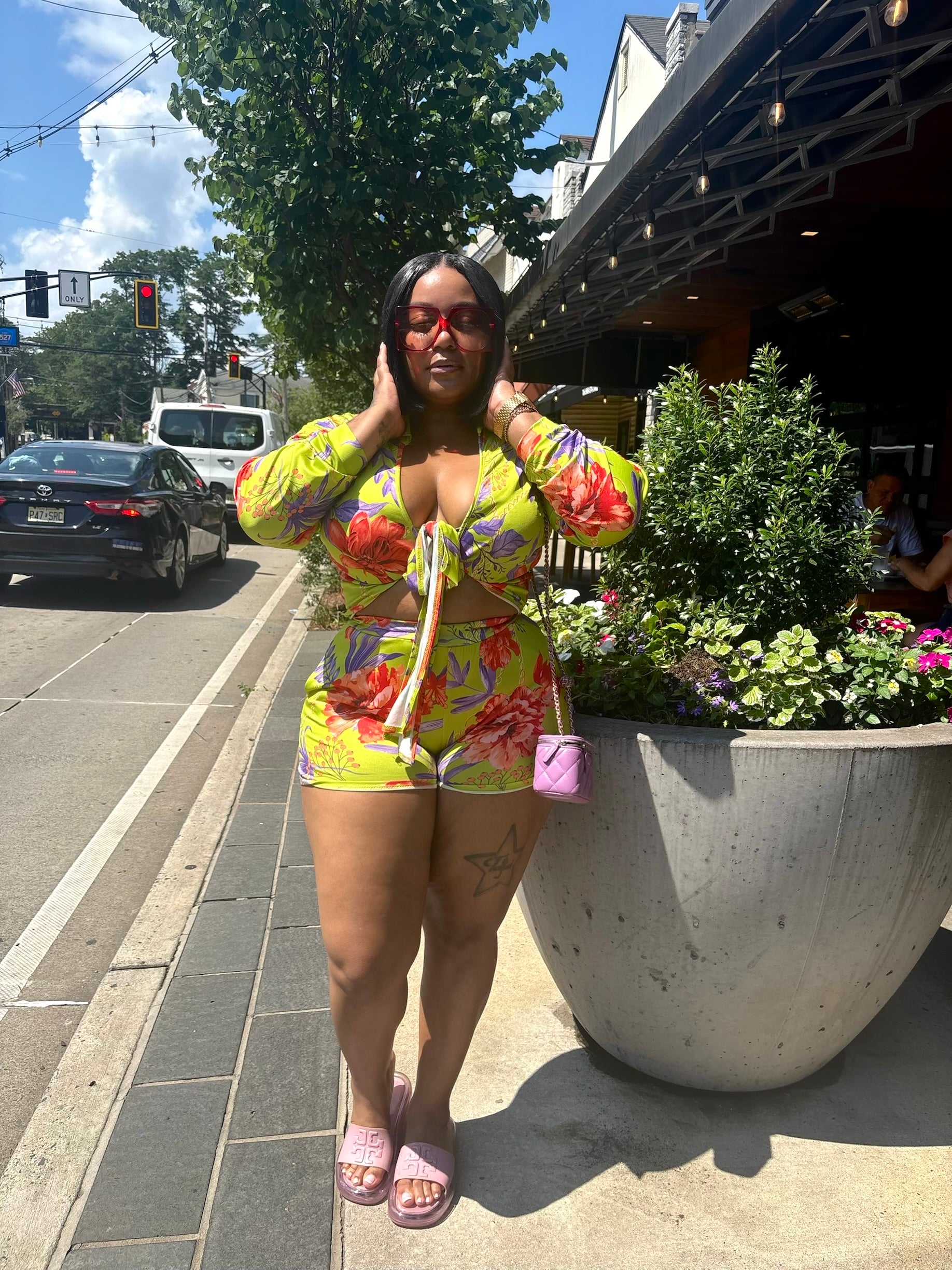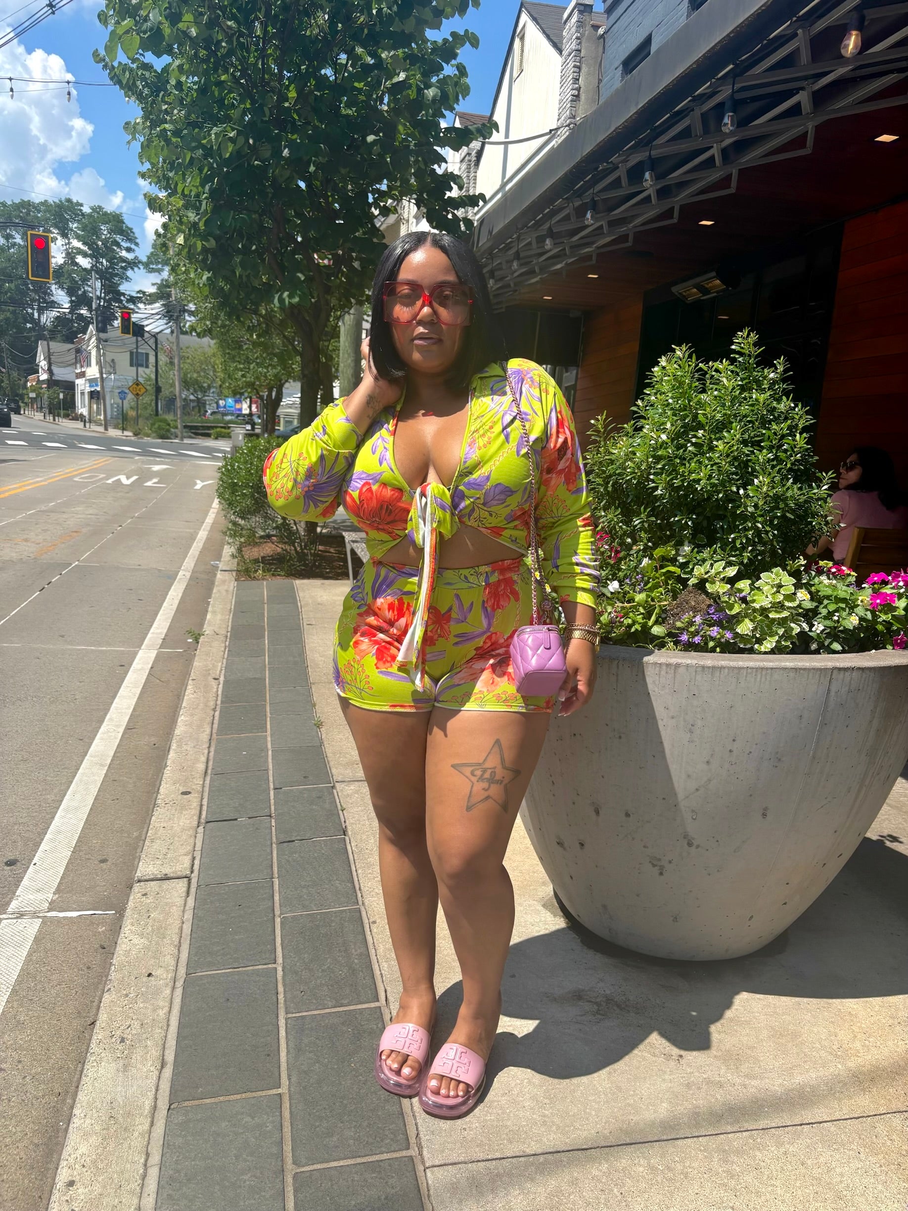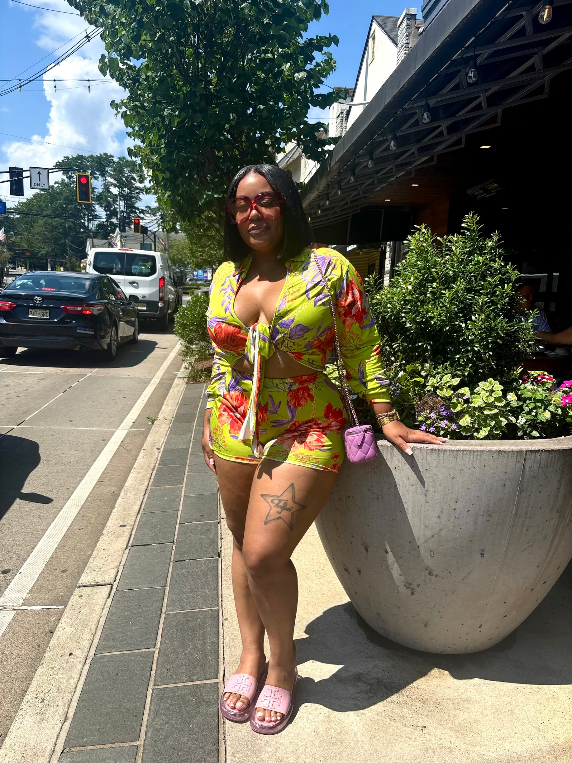 Get ready to bloom like an island babe in this set of shorts! Perfect for a day in the sun, these shorts will make you stand out with their vibrant colors and breezy fabric. Show off your flirty side and embrace the tropical vibes with the Island Bloom Flora Shorts Set